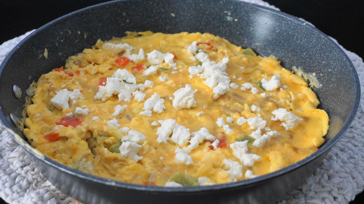Ανακινούμε το τηγάνι, να πάει παντού το μείγμα των αυγών.